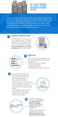En este momento de transición podrán encontrar en circulación productos con la identidad anterior y la nueva identidad Corteva.
