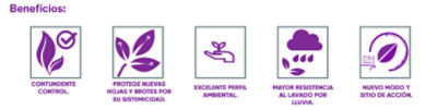 Además de ser resisitente al lavado por lluvia y poseer un perfil ambiental favorable, este innovador fungicida protege tu cultivo desde los nuevos brotes hasta la cosecha gracias a que ataca al hongo en todas las etapas de su ciclo de vida.
